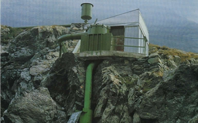 En 1974, les travaux préparatoires pour l’installation de la centrale débutèrent, qui fut inaugurée en 1978 ; la même année, la construction du refuge commença également.