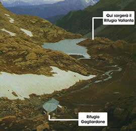 Ce n’est qu’en 1940 que le “Città di Saluzzo” fut reconstruit sur l’emplacement qui accueille aujourd’hui le “Gagliardone”, mais en 1944, une nouvelle avalanche emporta tout le deuxième étage. Ce n’est qu’en 1945, après une remise à neuf complète du bâtiment, que le refuge fut de nouveau inauguré, cette fois sous le nom de Giuseppe Gagliardone, célèbre alpiniste de Saluzzo décédé sur l’arête sud de l’Aiguille Noire de Peutérey le 6 juillet 1947. Avec l’augmentation constante du nombre d’alpinistes et de randonneurs dans le Vallone di Vallanta, la section du CAI Monviso de Saluzzo envisagea la construction d’un nouveau refuge, mieux adapté aux besoins actuels.
